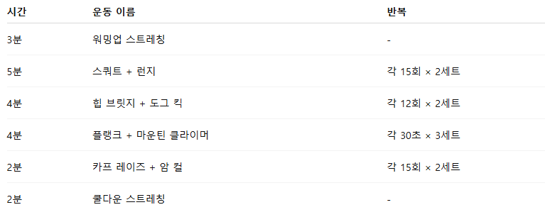 🕐 하루 20분, 주 3회로 가능한 홈트 루틴 예시