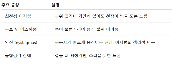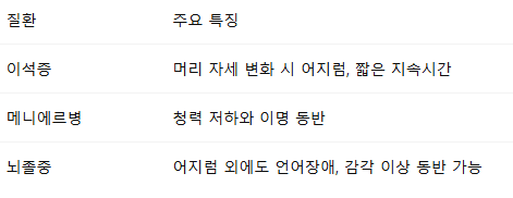 - 갑작스러운 회전성 어지럼증 (빙글빙글 도는 느낌)
